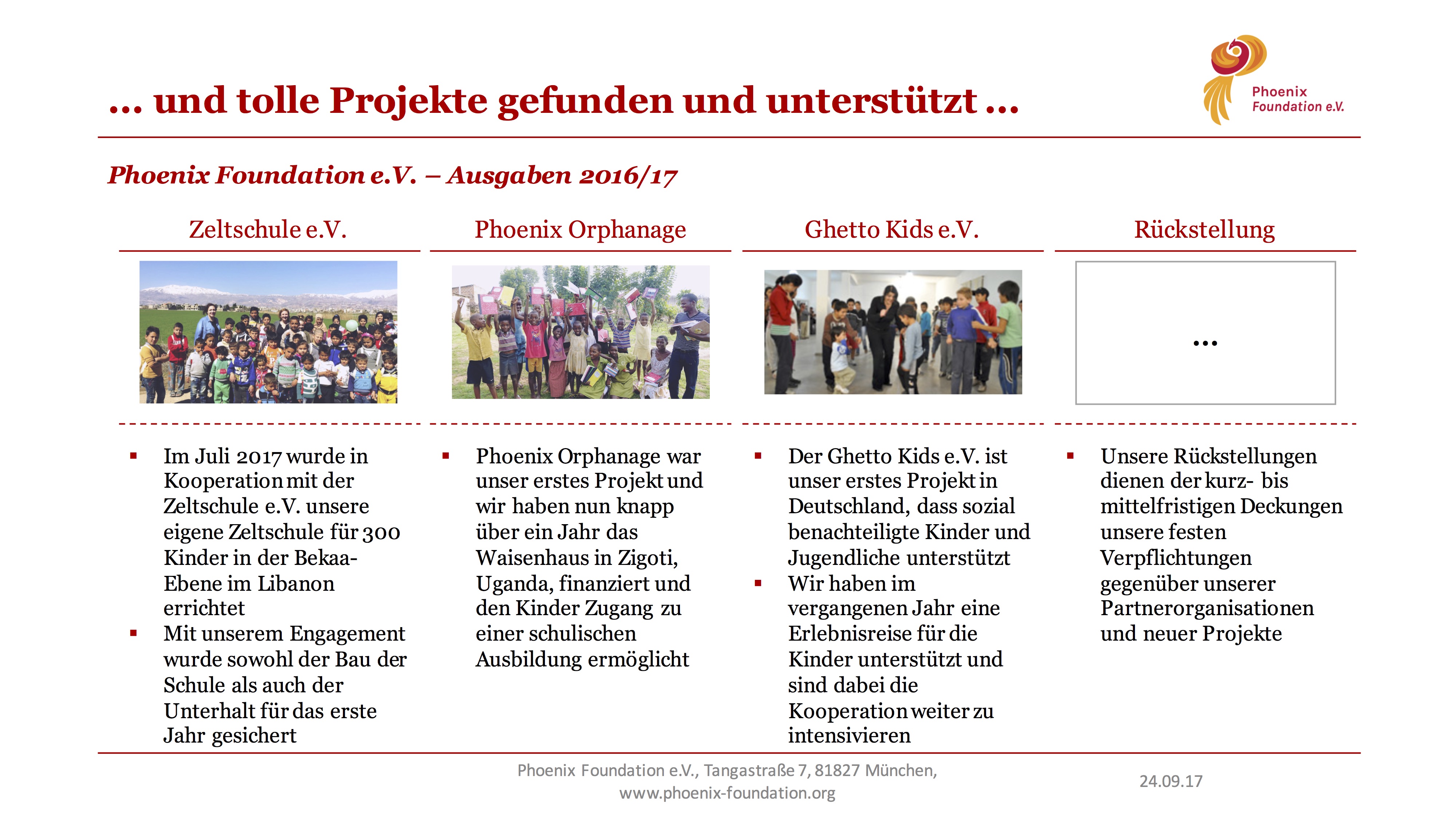 Statusbericht 2016/17 0 likesUnser erster Statusbericht ist da! Darauf können Sie die Verwendung der Spenden genau nachvollziehen und sehen, was wir dank ihrer Hilfe bereits realisieren konnten. Teilen